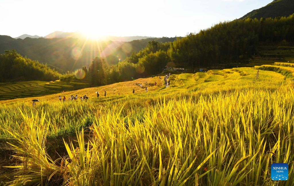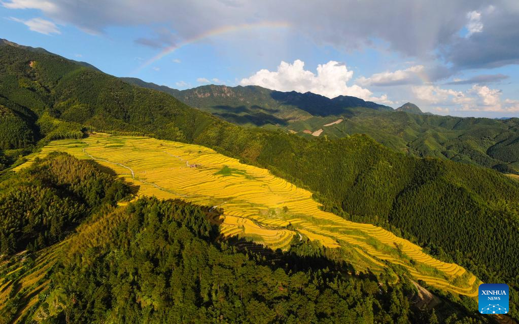 Photo taken on Oct. 3, 2022 shows the scenery of paddy fields in Lianshan Zhuang and Yao Autonomous County, south China's Guangdong Province. (Xinhua/Deng Hua)