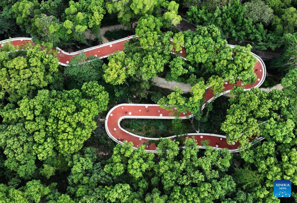 Aerial photo taken on Oct. 1, 2022 shows the scenery at Jinjishan Park in Fuzhou, southeast China's Fujian Province. (Xinhua/Wei Peiquan)