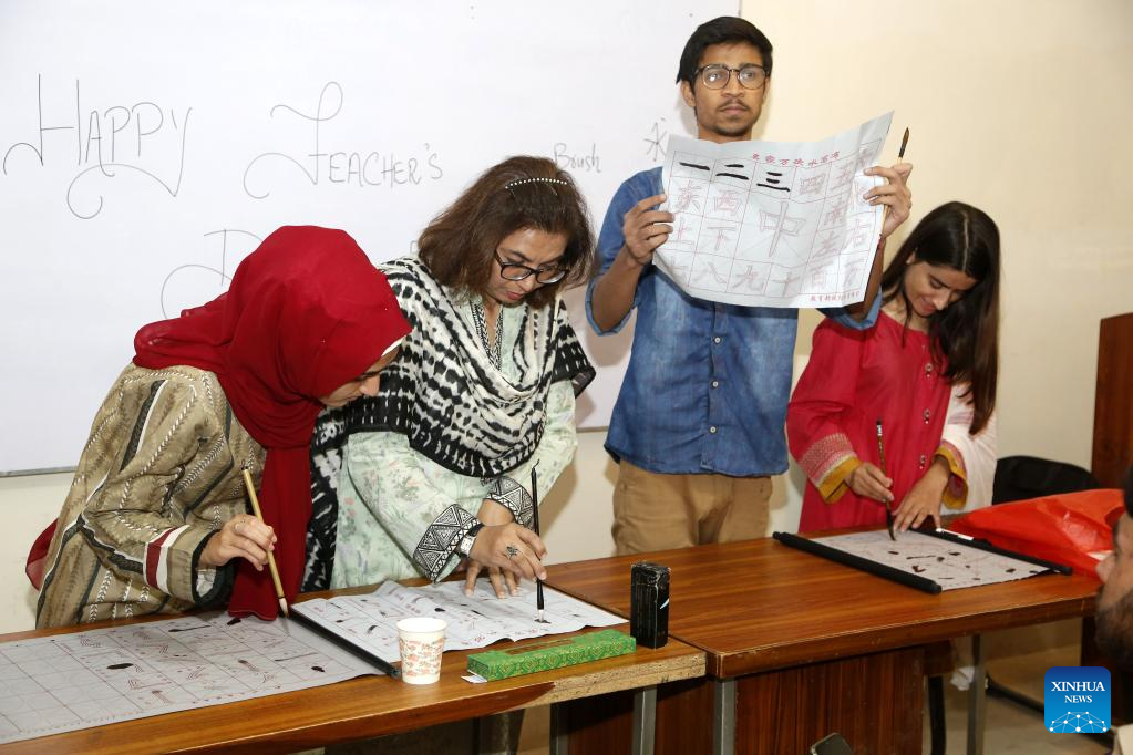 ISLAMABAD, Oct. 5 (Xinhua) -- Sana Farooq has been learning the Chinese language at the National University of Modern Languages (NUML) for over a month, and the more she learns about the Chinese language, the more she feels herself getting attached to the Chinese culture.