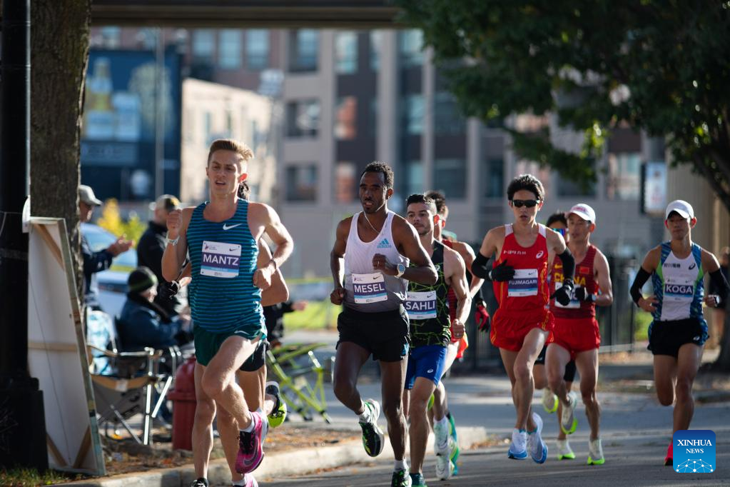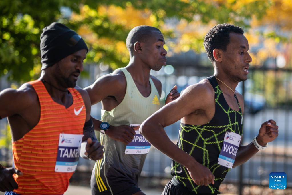 CHICAGO, Oct. 9 (Xinhua) -- More than 40,000 professional and amateur runners from over 100 countries and regions hit the road in Grant Park in downtown Chicago early on Sunday morning for the 44th edition of the annual Chicago Marathon.