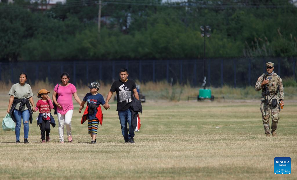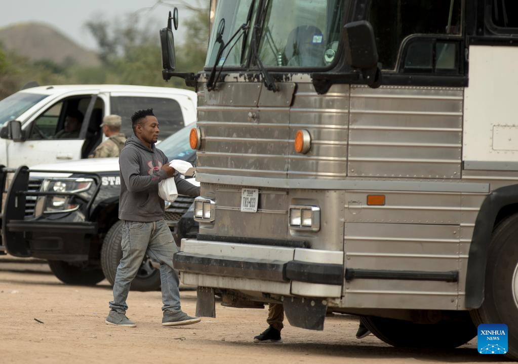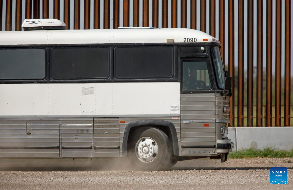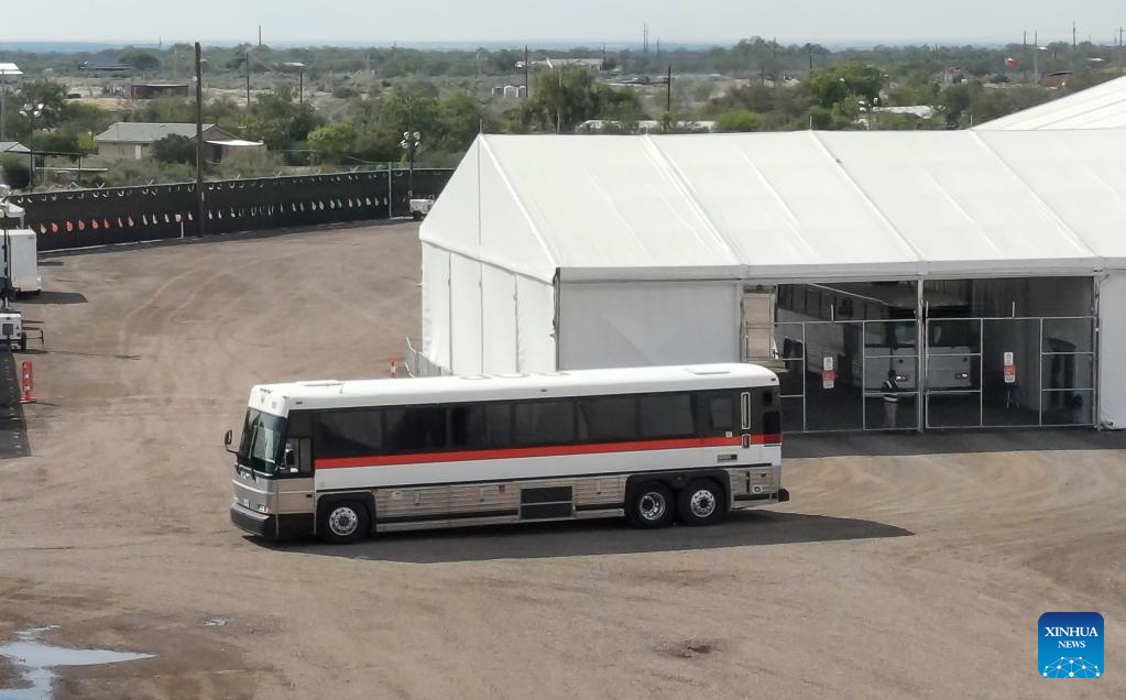 EAGLE PASS/HOUSTON, the United States, Oct. 11 (Xinhua) -- Buses carrying migrants from Republican-led border states continue to arrive in liberal bastions like New York, Washington, D.C., and Chicago, dragging the U.S. migrant crisis into the eye of the storm of partisan battles ahead of the November midterm elections.