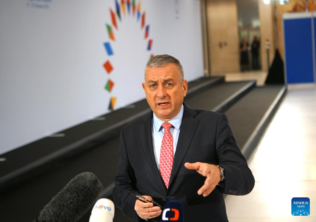 Czech Minister of Industry and Trade Jozef Sikela speaks to journalists before an informal meeting of European Union (EU) energy ministers in Prague, the Czech Republic, on Oct. 12, 2022. European Union (EU) energy ministers held an informal meeting here on Wednesday to discuss solutions for high gas prices, preparing for the energy situation this winter, and a possible revision of the electricity market. (Photo by Dana Kesnerova/Xinhua)