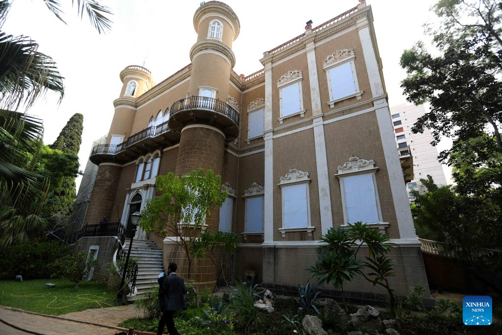 The Sursock Palace is pictured in Beirut, Lebanon, on Oct. 13, 2022. The United Nations Educational, Scientific and Cultural Organization (UNESCO) on Thursday announced that it has reached an agreement with the Swiss government and the Sursock Palace Association to finance the rehabilitation of the Sursock Palace, an iconic building damaged by the Beirut port blasts two years ago. (Xinhua/Bilal Jawich)