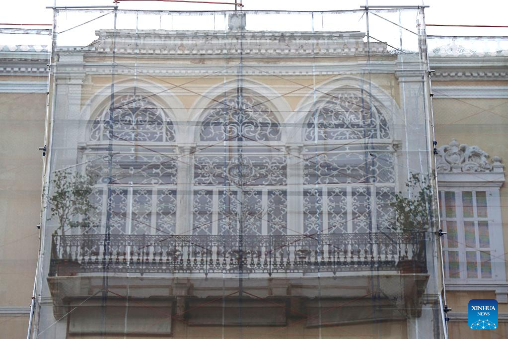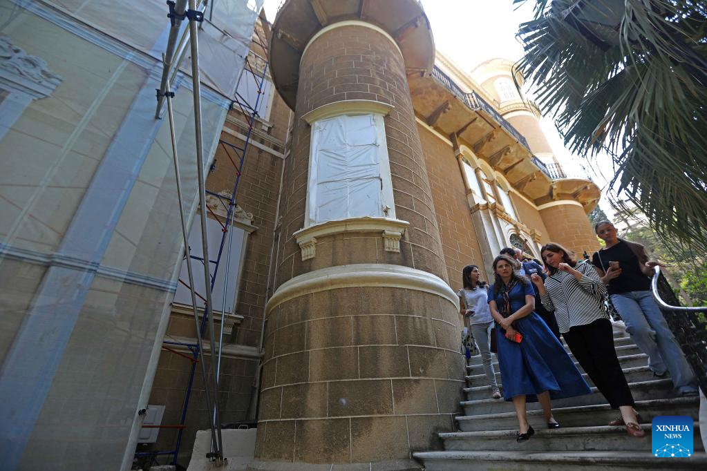 Picture shows the rehabilitation work at the Sursock Palace in Beirut, Lebanon, on Oct. 13, 2022. The United Nations Educational, Scientific and Cultural Organization (UNESCO) on Thursday announced that it has reached an agreement with the Swiss government and the Sursock Palace Association to finance the rehabilitation of the Sursock Palace, an iconic building damaged by the Beirut port blasts two years ago. (Xinhua/Bilal Jawich)