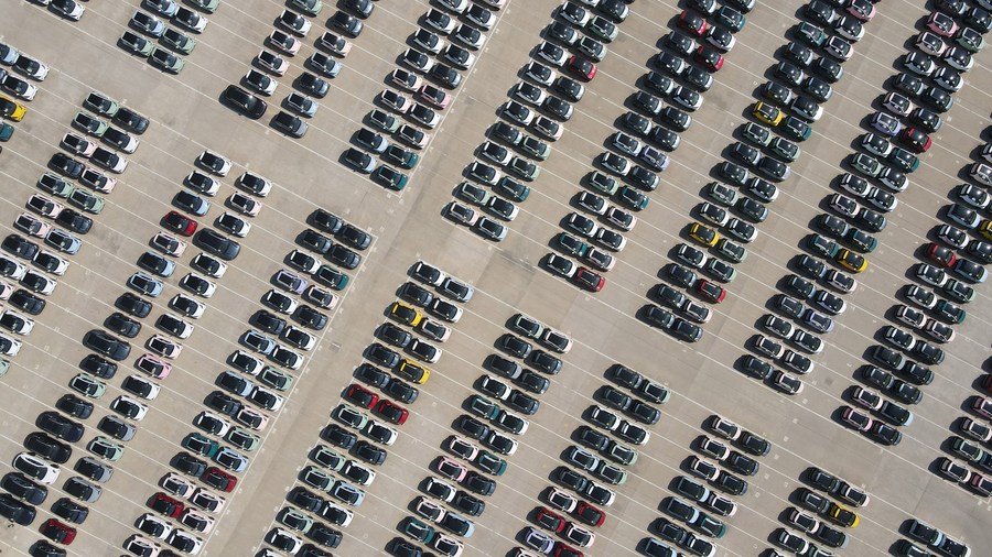 Aerial photo taken on Oct. 12, 2022 shows new energy vehicles made by Chinese automaker Chery Holding Group Co., Ltd. in Wuhu, east China's Anhui Province. (Xinhua/Zhou Mu)■