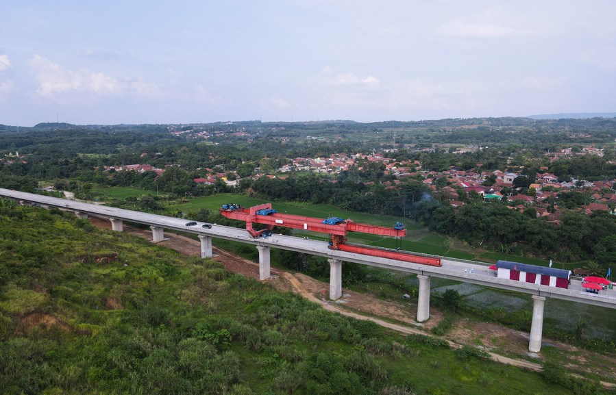 JAKARTA, Oct. 17 (Xinhua) -- The erection task of all box girders along the Jakarta-Bandung High-Speed Railway (HSR) was completed Sunday, which means the track-laying channel has fully opened, laying a solid foundation for the completion of the HSR and its opening to traffic in June 2023.