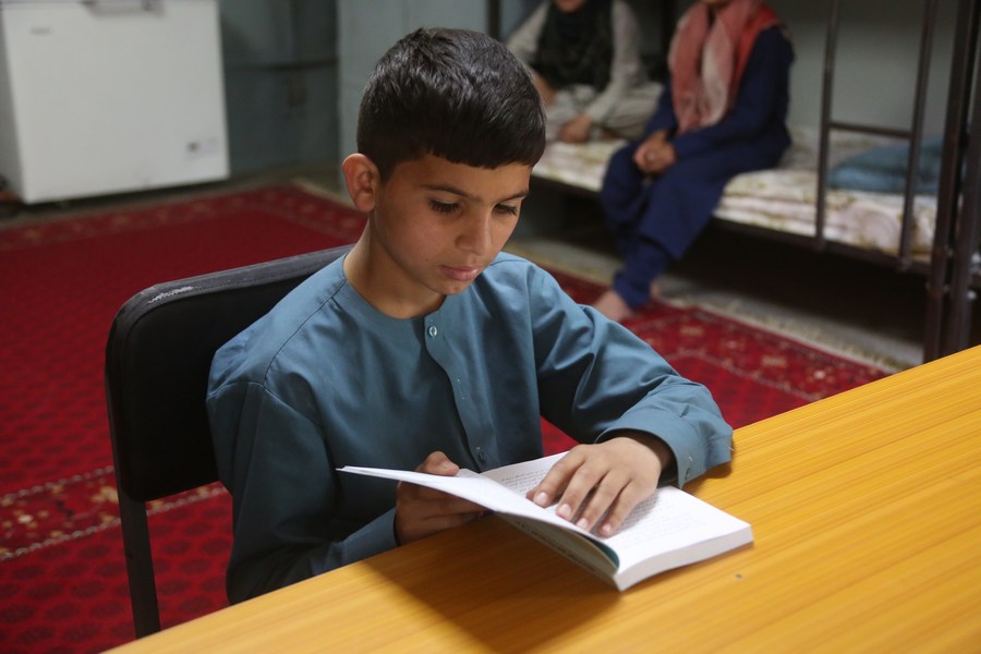 Photo taken on May 5, 2022, shows Afghan orphans in an orphanage in Kabul, Afghanistan. (Photo by Saifurahman Safi/Xinhua)