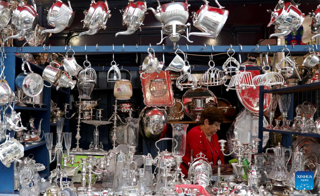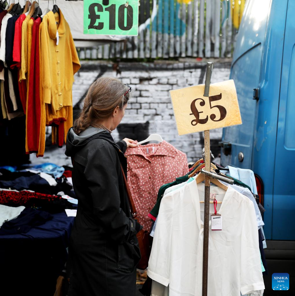 A vendor is seen at Portobello Market in London, Britain, Oct. 22, 2022. Pushed up by rising food prices, Britain's Consumer Price Index (CPI) rose by 10.1 percent in the 12 months to September, up from 9.9 percent in August and returning to July's 40-year high. (Xinhua/Li Ying)