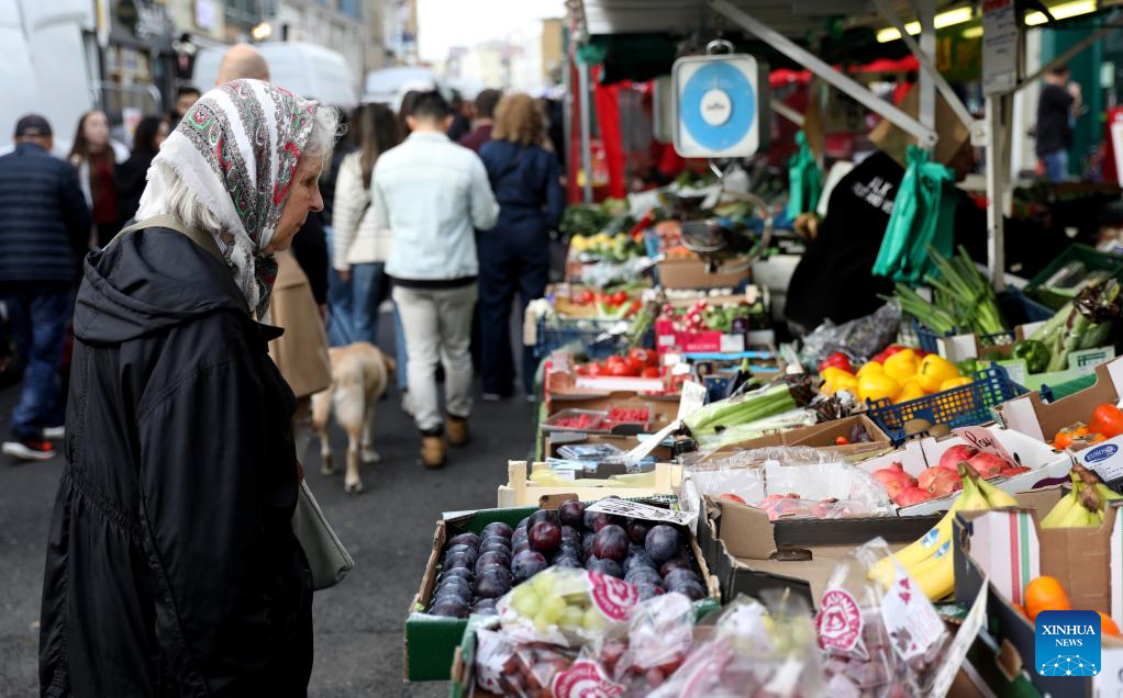 Vegetables are sold at Portobello Market in London, Britain, Oct. 22, 2022. Pushed up by rising food prices, Britain's Consumer Price Index (CPI) rose by 10.1 percent in the 12 months to September, up from 9.9 percent in August and returning to July's 40-year high. (Xinhua/Li Ying)