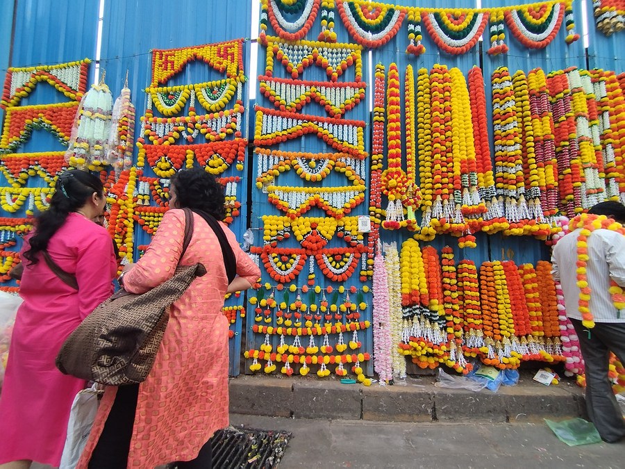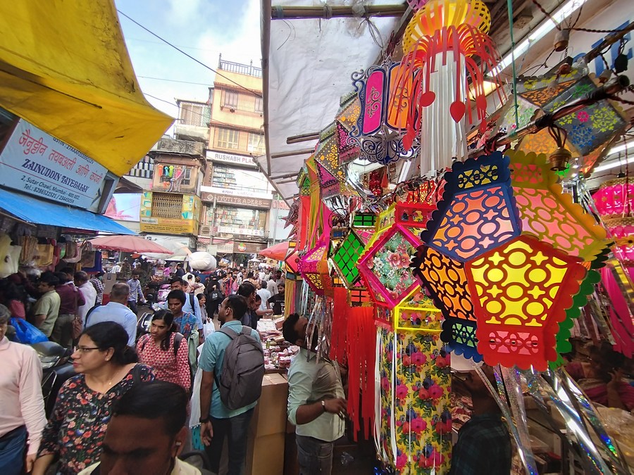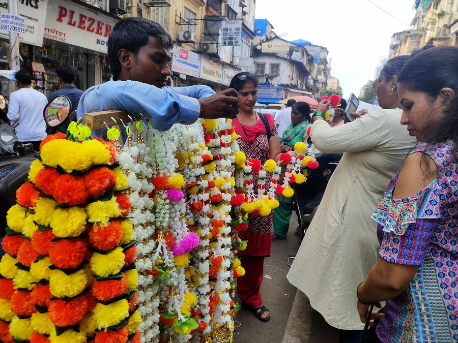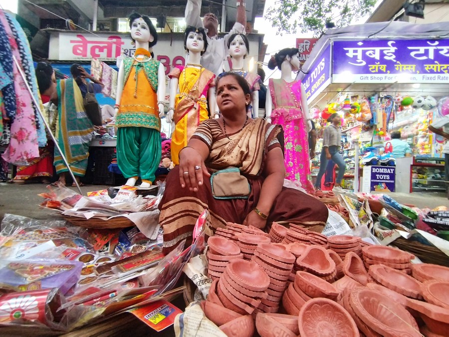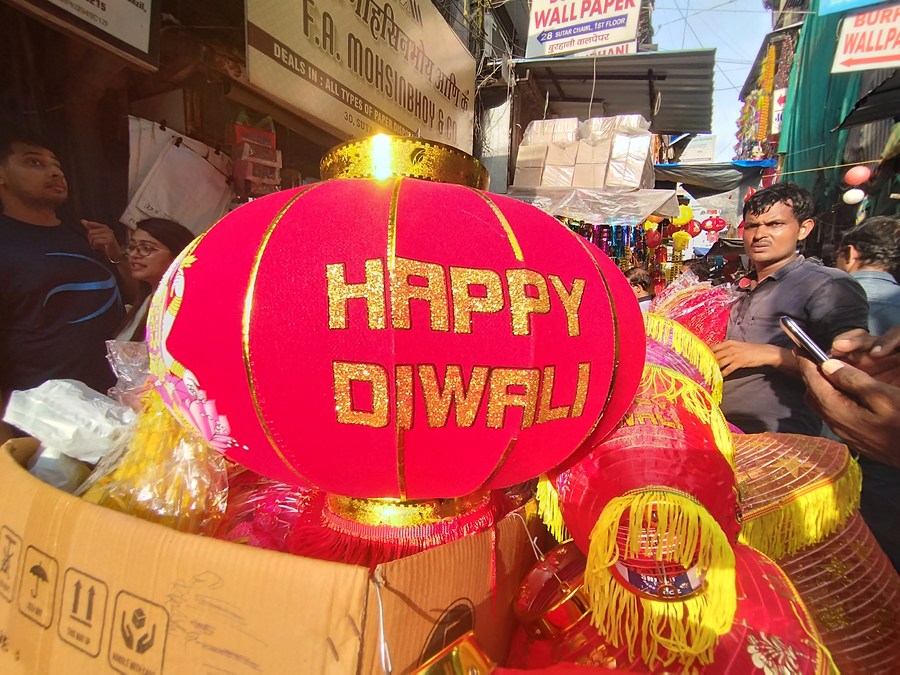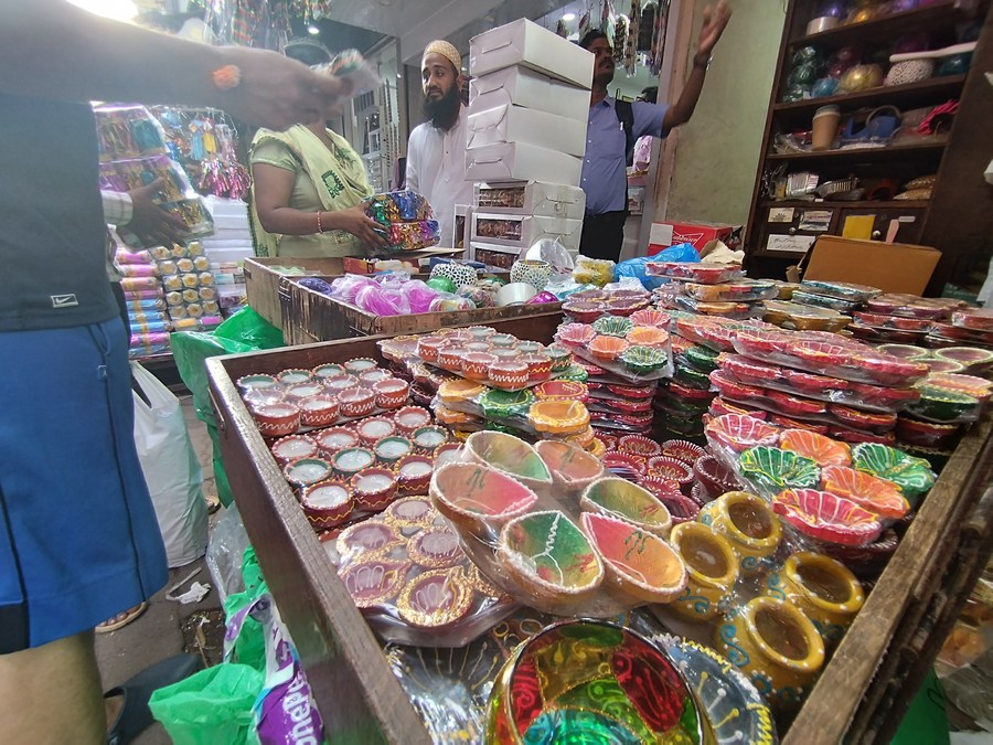 The whole city of Mumbai is covered with eye-catching lights and decorations with colorful rangoli. People flock to the local market to purchase firecrackers, color powder, and decorative materials to celebrate the festival.