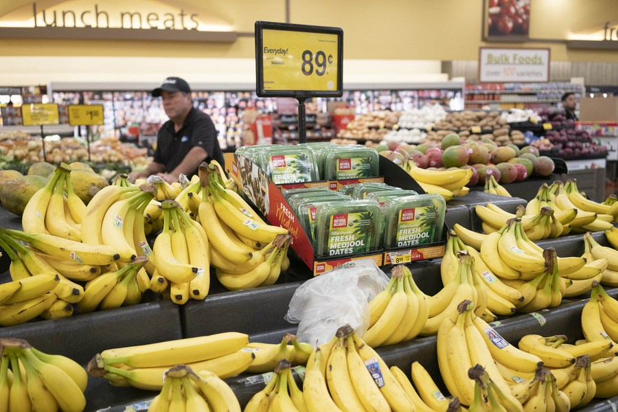 A customer shops at a supermarket in Millbrae, California, the United States, Aug. 10, 2022. (Photo by Li Jianguo/Xinhua)