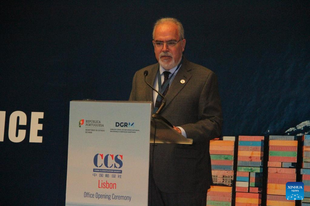 Jose Maria Costa, Portugal's secretary of state for maritime affairs, speaks at the opening ceremony for the Lisbon office of the China Classification Society (CCS), in Lisbon, Portugal, Oct. 20, 2022. China's shipping classification giant, China Classification Society (CCS), has opened its office here in a bid to boost its business in Europe and expand its services to customers across the world.(Xinhua/Wen Xinnian)