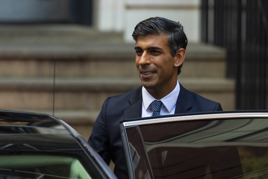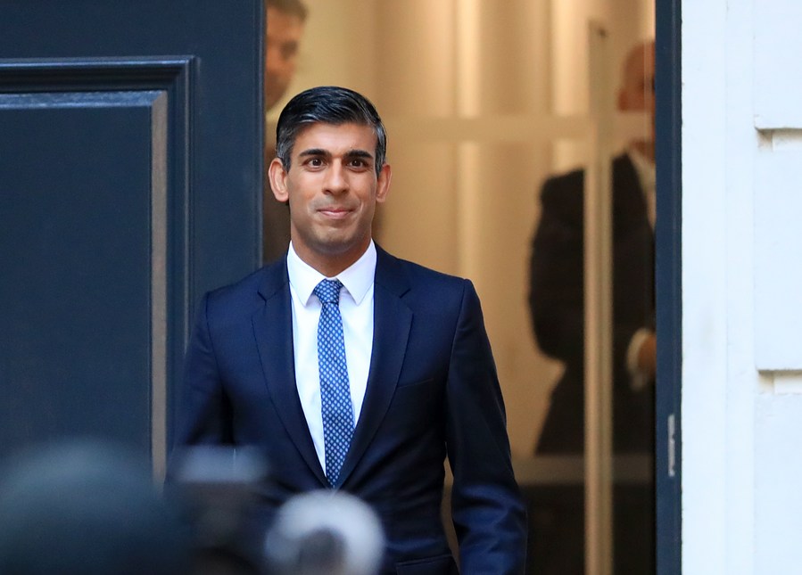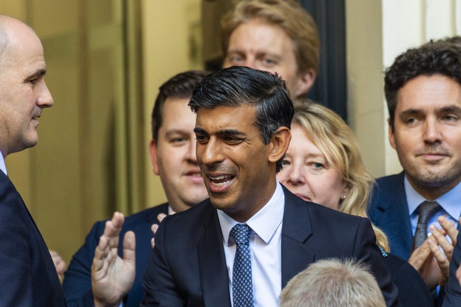 Rishi Sunak leaves the Conservative Party headquarters in London, Britain, on Oct. 24, 2022. (Xinhua/Li Ying)
