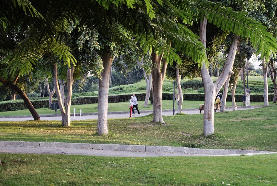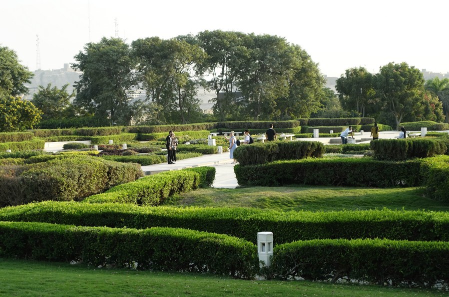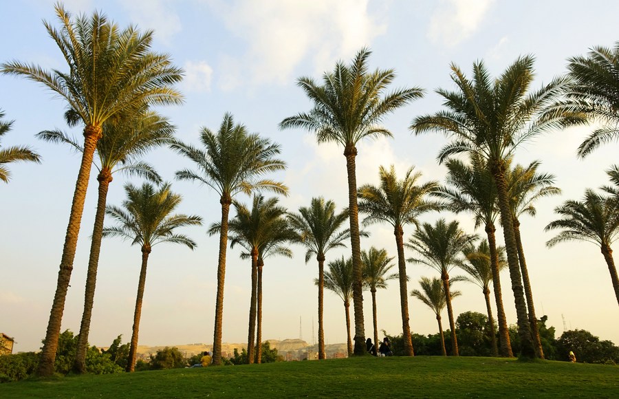 People spend time at Al-Azhar Park in Cairo, Egypt, on Oct. 24, 2022. (Xinhua/Wang Dongzhen)