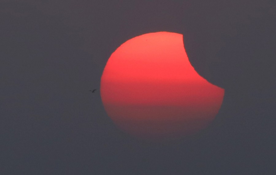 A partial solar eclipse is pictured in Bangalore, India, Oct. 25, 2022. (Str/Xinhua)