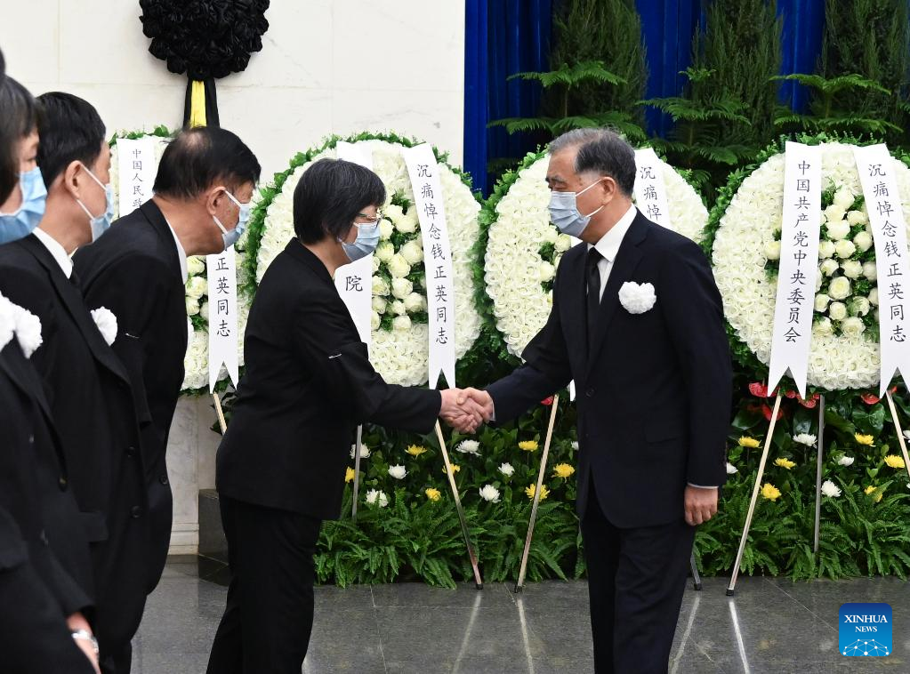 Entrusted by the Communist Party of China (CPC) Central Committee, CPPCC National Committee Chairman Wang Yang, along with other senior officials, paid their final respects to Qian at the Babaoshan Revolutionary Cemetery in Beijing Friday.