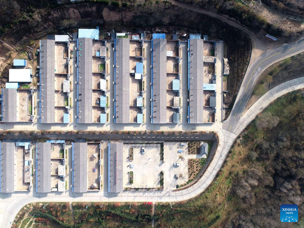 This aerial photo taken on Oct. 27, 2022 shows a view of Nangou Village of Yan'an, northwest China's Shaanxi Province. Covering an area of 24 square kilometers, the Nangou Village is home to more than 1,000 villagers. Led by the village's Party branch, Nangou has worked out ways to inject vitality into the countryside. It has witnessed the boom of planting and breeding industries and rural tourism. Villagers have constantly increased their income by earning dividends and taking odd jobs during the slack farming season. (Xinhua/Zhang Bowen)