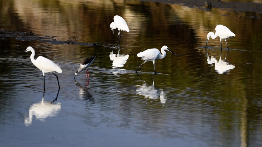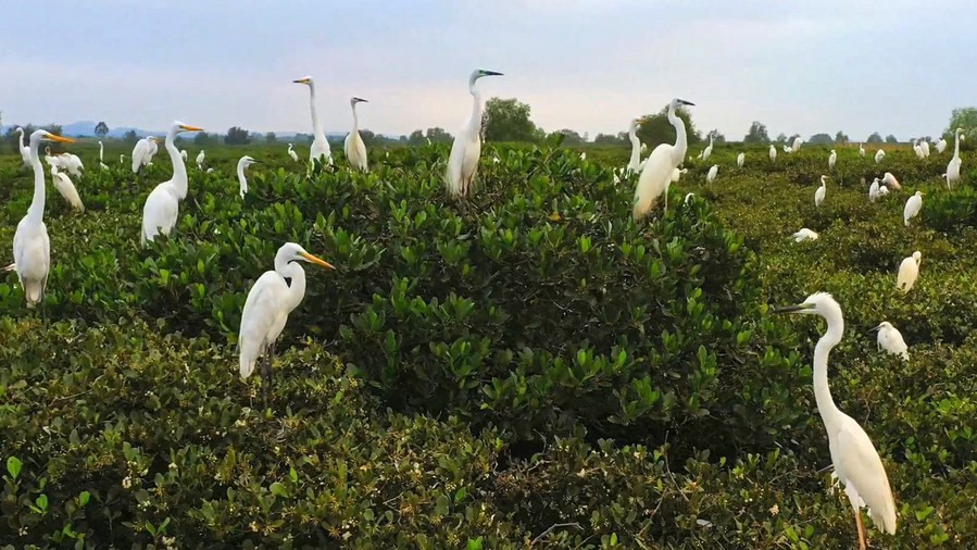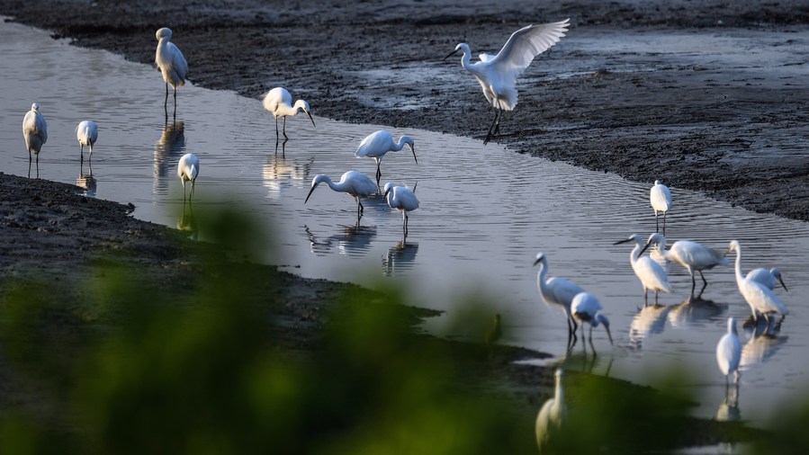 Birds are seen in Shankou Mangrove Nature Reserve in Hepu County of Beihai City, south China's Guangxi Zhuang Autonomous Region, Oct. 23, 2022. (Xinhua/Zhang Ailin)