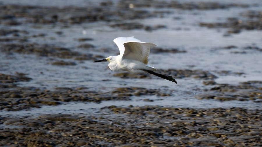 A bird flies in Shankou Mangrove Nature Reserve in Hepu County of Beihai City, south China's Guangxi Zhuang Autonomous Region, Oct. 23, 2022. (Xinhua/Zhang Ailin)■