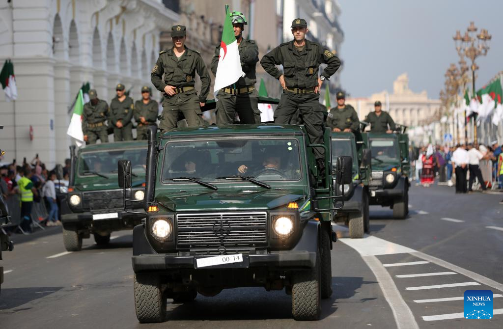 People take part in a parade to celebrate the National Day in Algiers, Algeria, Oct. 31, 2022. (Xinhua)