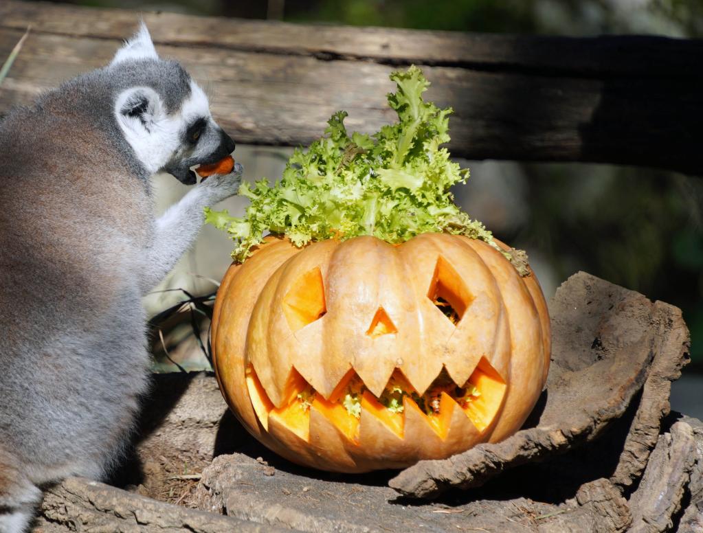 Bioparco zoo prepared pumpkins for animals to celebrate the Halloween. (Xinhua/Jin Mamengni)