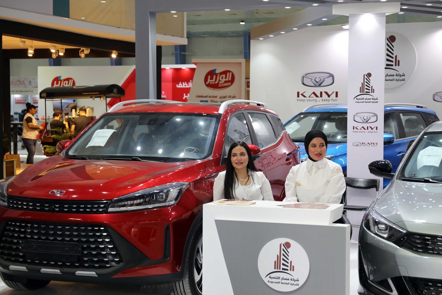 New cars are displayed at the Baghdad International Fair in Baghdad, Iraq, on Nov. 1, 2022. (Xinhua/Khalil Dawood)