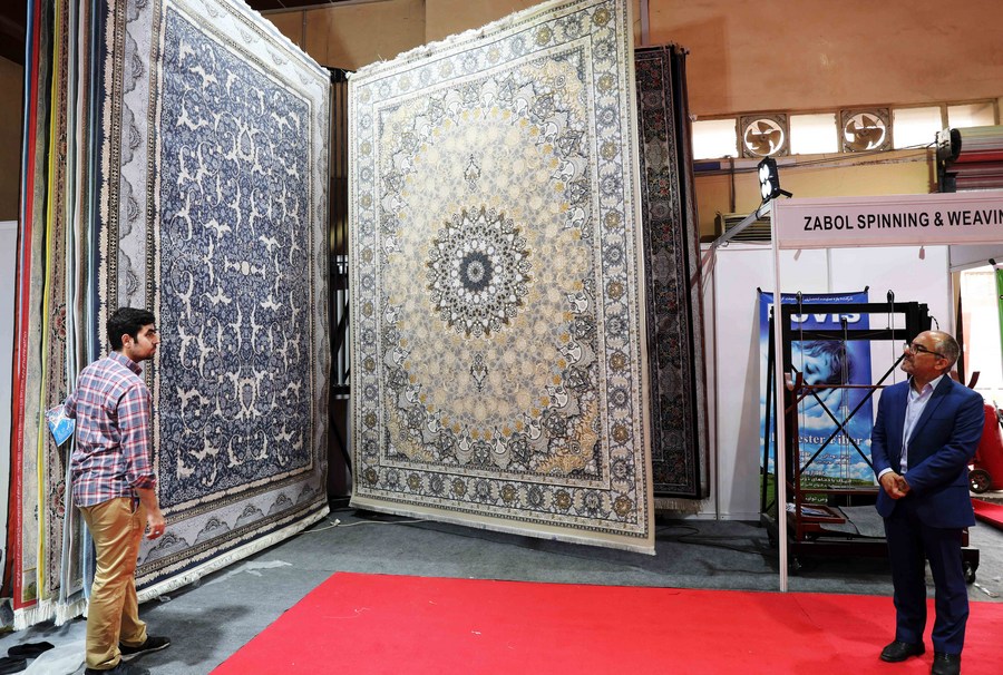 Iranian carpets are displayed at the Baghdad International Fair in Baghdad, Iraq, on Nov. 1, 2022. (Xinhua/Khalil Dawood) ■