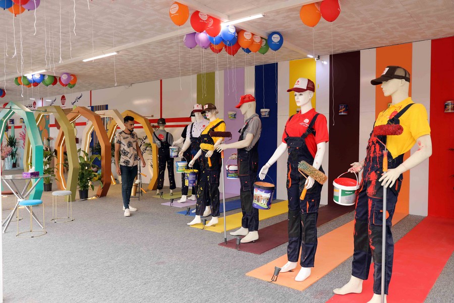 A paint company exhibits its products at the Baghdad International Fair in Baghdad, Iraq, on Nov. 1, 2022. (Xinhua/Khalil Dawood)