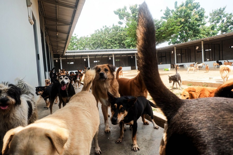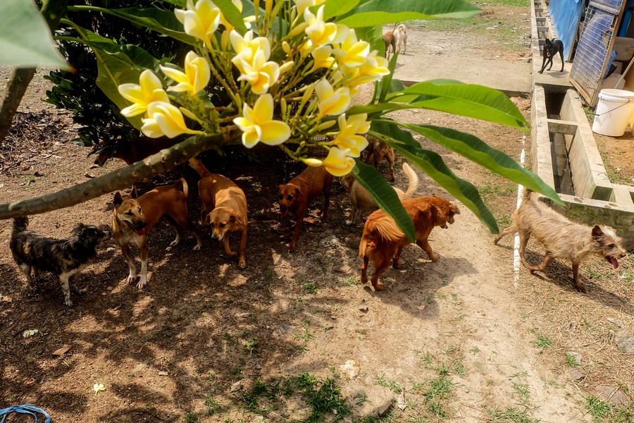 Dogs are seen outside cages during playing time at Ting Ping Ping (TPP) Shelter House Foundation in Serang, Banten Province, Indonesia on Nov. 1, 2022.(Xinhua/Agung Kuncahya B.)
