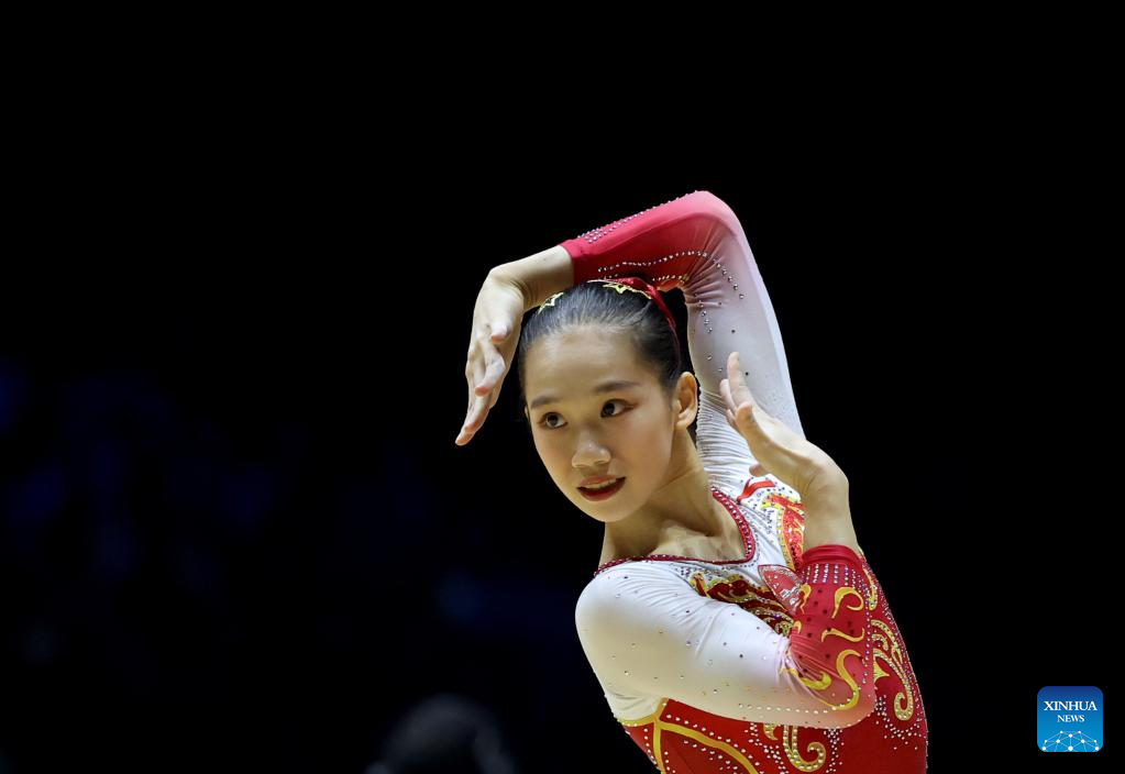 Ou Yushan of team China competes on the floor exercise of the women's team final at the 51st FIG Artistic Gymnastics World Championships in Liverpool, Britain, Nov. 1, 2022. (Xinhua/Li Ying)