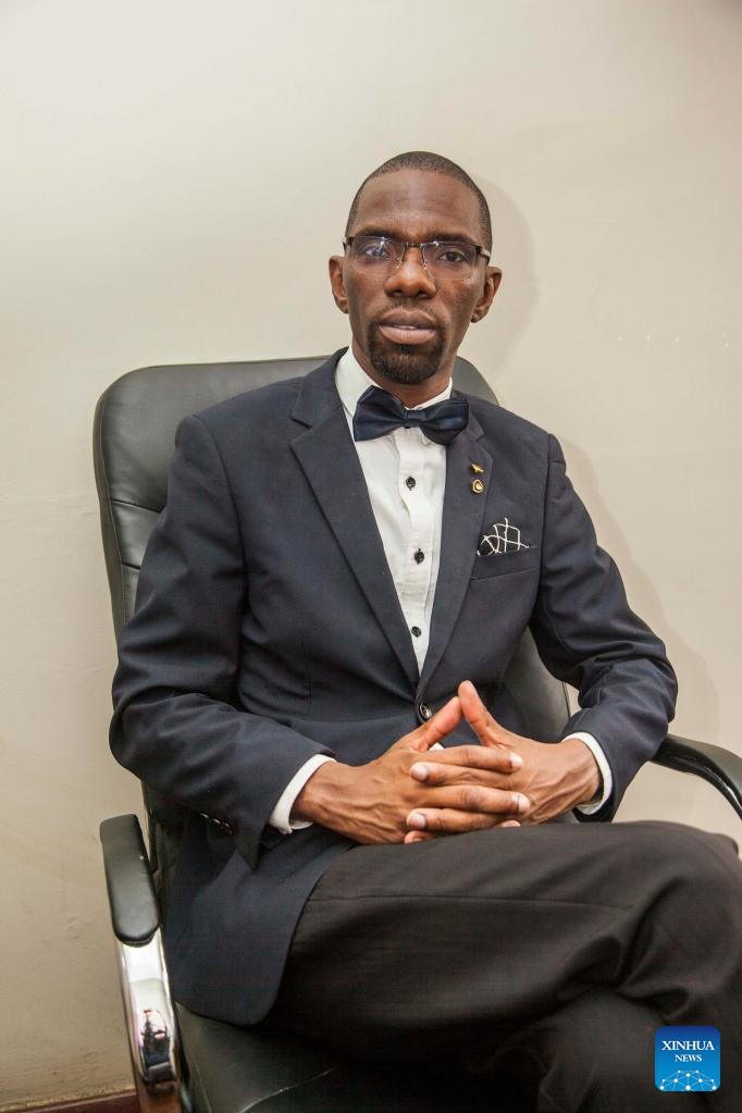 Kelvin Chisanga, a Zambian social economist, receives an interview with Xinhua in Lusaka, Zambia, on Nov. 1, 2022. (Xinhua/Martin Mbangweta)