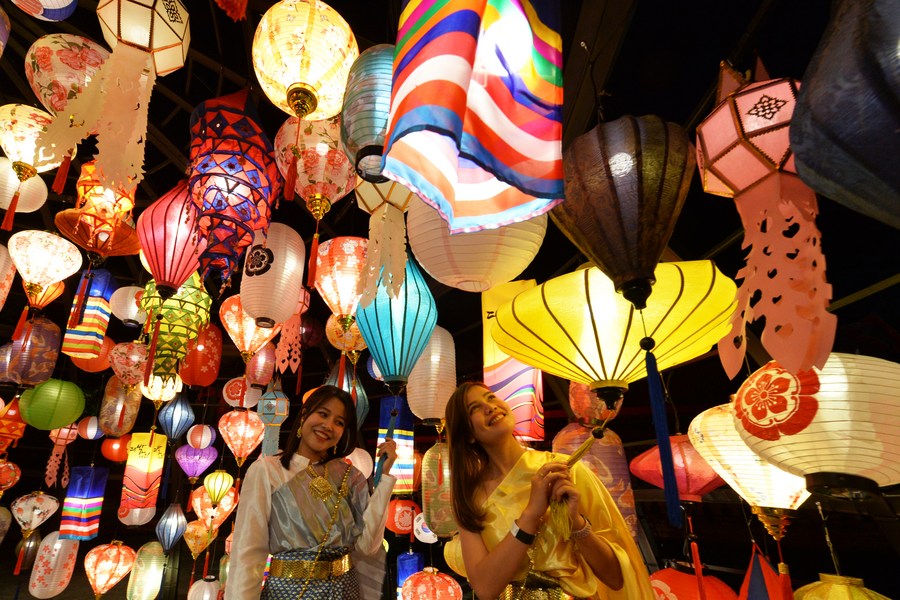 A man takes photos at the Thailand International Lantern and Food Festival in Muangboran of Samut Prakan Province, Thailand, Nov. 4, 2022. (Xinhua/Rachen Sageamsak)