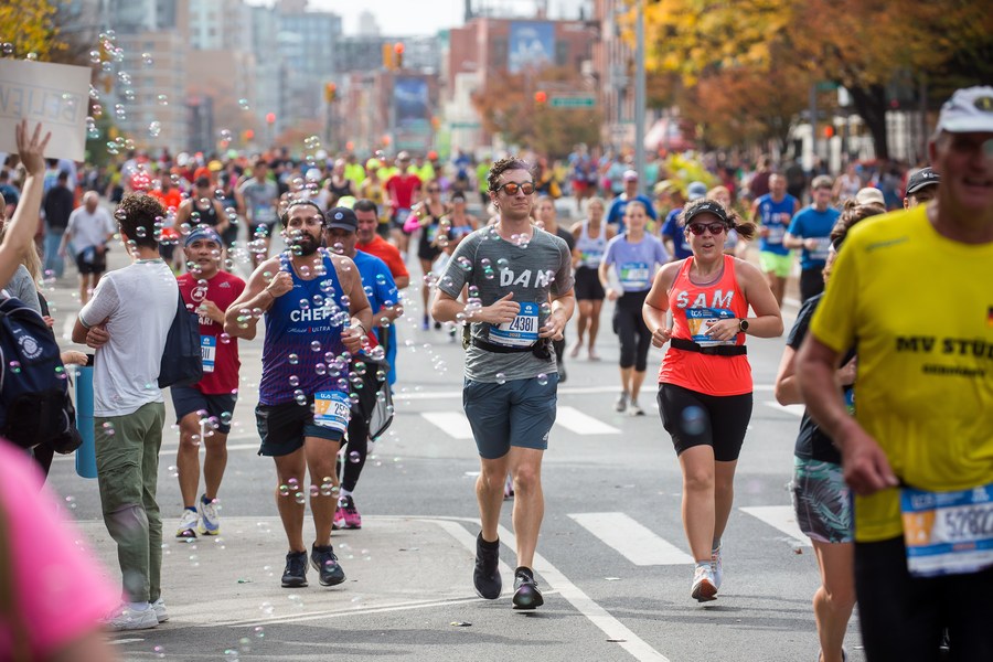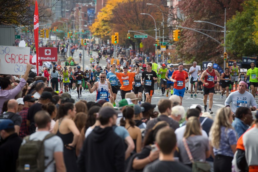 Runners compete during the 2022 TCS New York City Marathon in New York, the United States, on Nov. 6, 2022. (Photo by Michael Nagle/Xinhua)