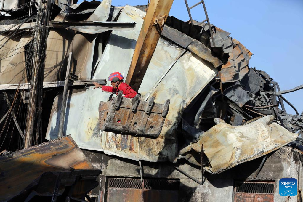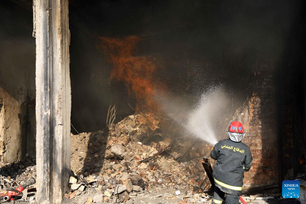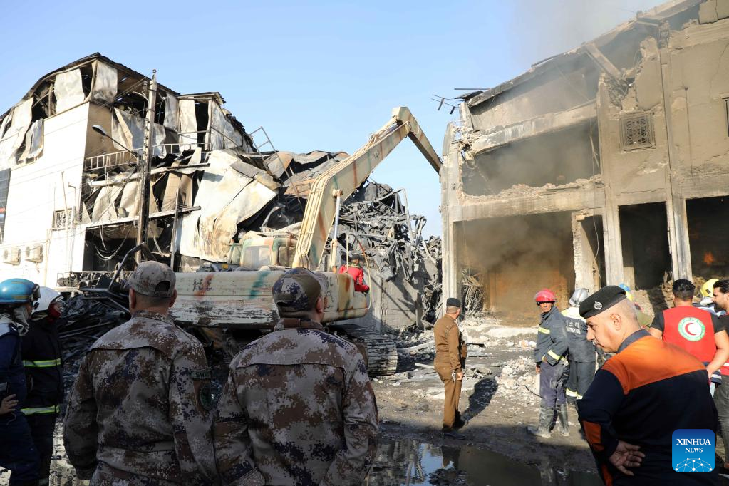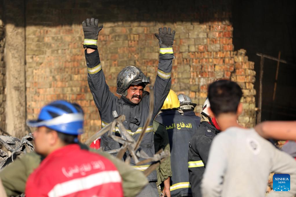 BAGHDAD, Nov. 7 (Xinhua) -- Iraqi rescue teams on Monday continue to search for the 11 missing people believed to have been buried in the rubbles of a building that was engulfed by a massive fire on Sunday in central Baghdad.