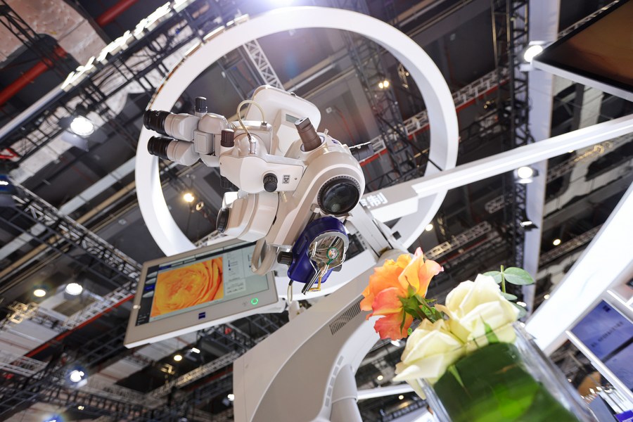 This photo taken on Nov. 6, 2022 shows a digital microscope for ophthalmic surgery at the booth of ZEISS during the fifth China International Import Expo (CIIE) in east China's Shanghai. (Xinhua/Li Jing)