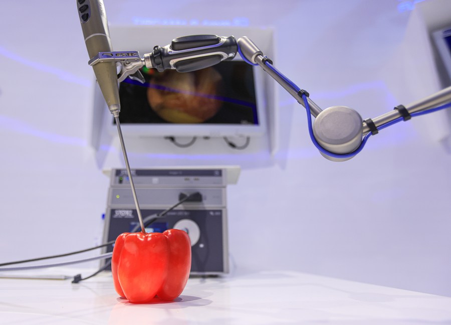 This photo taken on Nov. 7, 2022 shows an electronic endoscope during the fifth China International Import Expo (CIIE) in east China's Shanghai. (Xinhua/Li Jing)