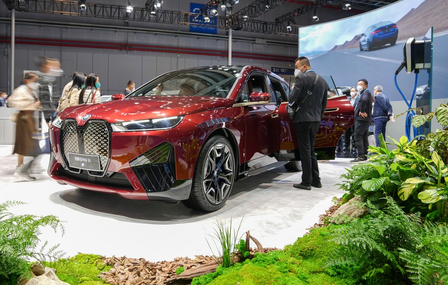 This photo taken on Nov. 6, 2022 shows a new energy vehicle of German automaker BMW at the automobile exhibition area of the fifth China International Import Expo (CIIE) at the National Exhibition and Convention Center (Shanghai) in east China's Shanghai. (Xinhua/Ding Ting)