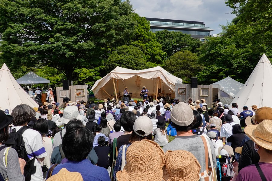 A music performance is held in a flea market at Showa Memorial Park in Tokyo, Japan, June 4, 2022.(Xinhua/Zhang Xiaoyu)