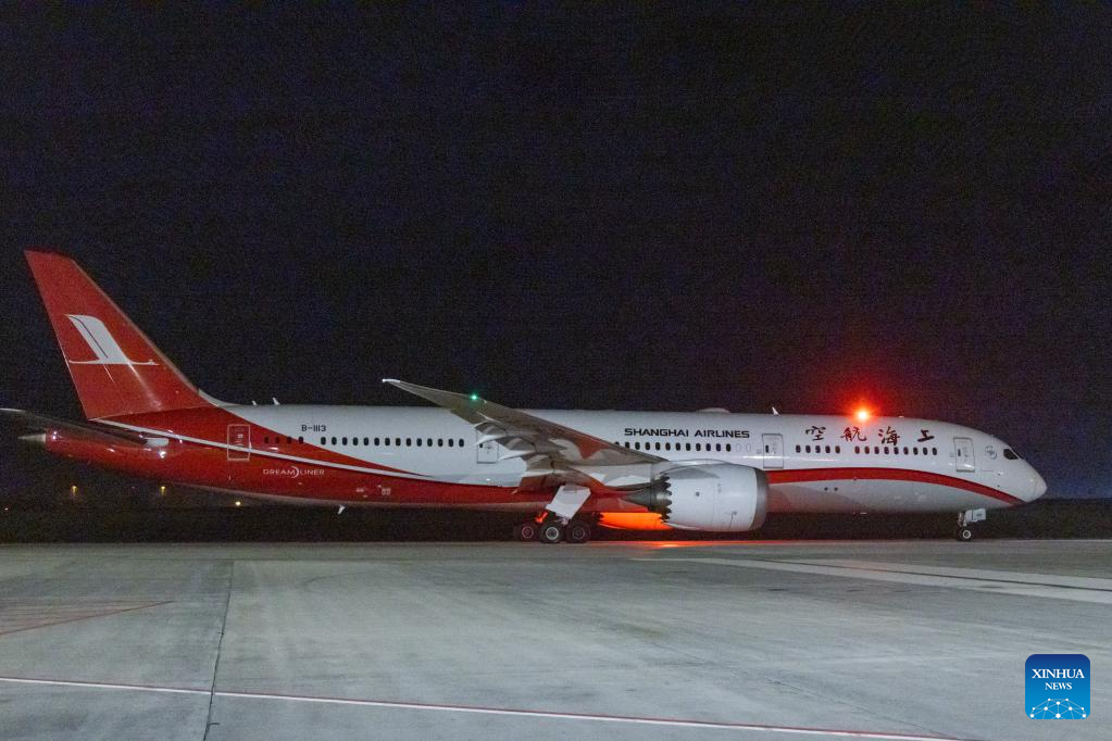 BUDAPEST, Nov. 11 (Xinhua) -- A passenger plane that took off from Shanghai Pudong International Airport landed at Budapest Ferenc Liszt International Airport here on Friday morning, resuming the direct passenger flights between the two cities operated by China Eastern Airlines.