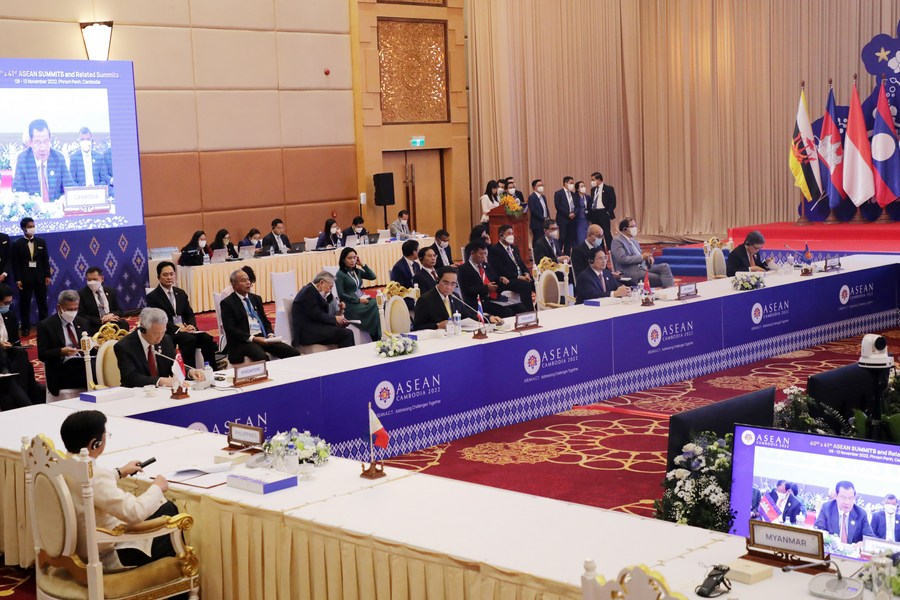 PHNOM PENH, Nov. 12 (Xinhua) -- The leaders of the Association of Southeast Asian Nations (ASEAN) on Friday adopted multiple statements during their meeting here in the capital of Cambodia, aiming to further promote cooperation for a post-pandemic recovery and to address key challenges together.