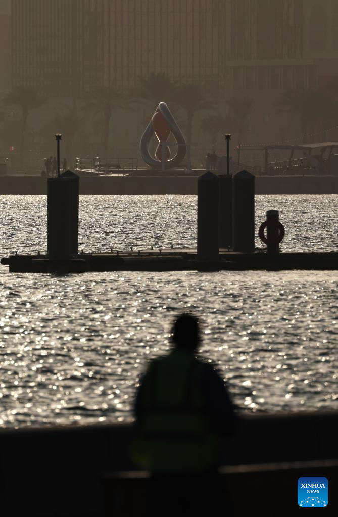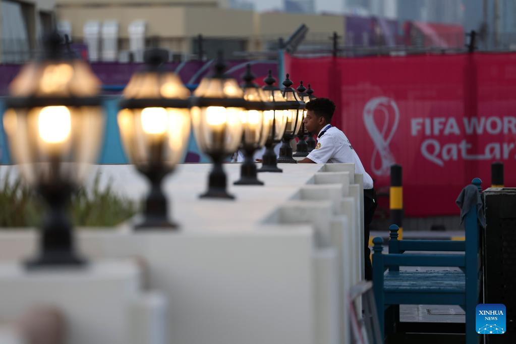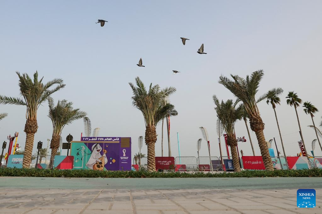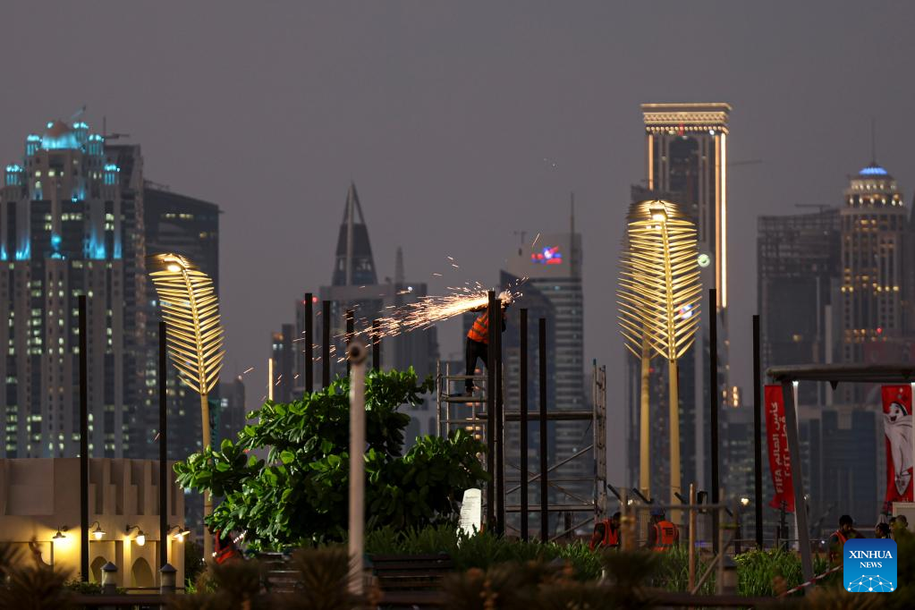 Workers work near the Doha Corniche in Doha, Qatar, on Nov. 9, 2022. (Xinhua/Li Ming)