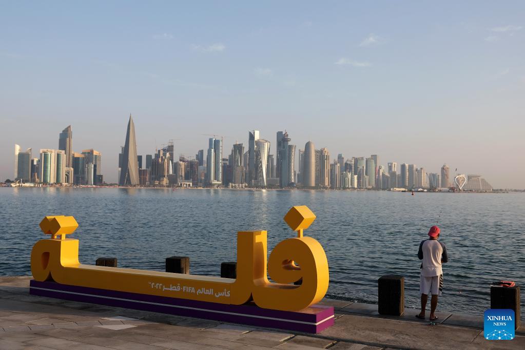 A man fishes at the Doha Corniche in Doha, Qatar, on Nov. 11, 2022. (Xinhua/Jia Haocheng)