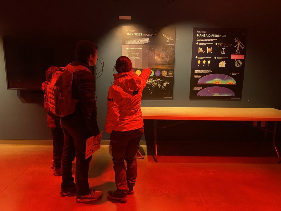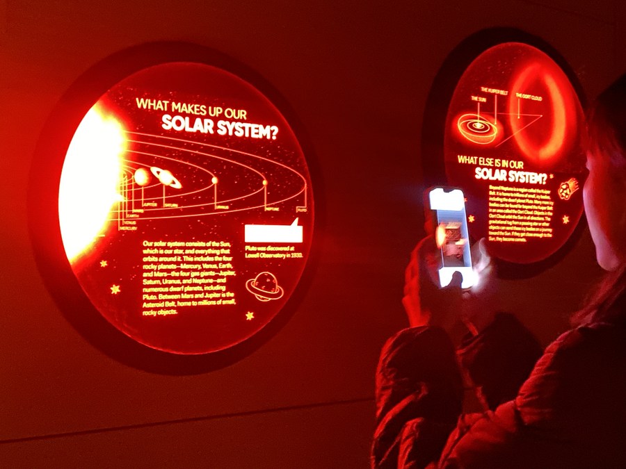Visitors learn that dark skies are important to the environment at Lowell Observatory in Flagstaff, Arizona, the United States, on Nov. 10, 2022. (Photo by Zeng Hui/Xinhua)