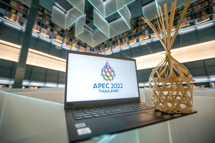 BANGKOK, Nov. 15 (Xinhua) -- With the annual APEC gathering being kicked off in Bangkok this week, the tricolor logo for APEC 2022 can be seen all over the Thai capital, but few people know it was designed by a 21-year-old local college student.