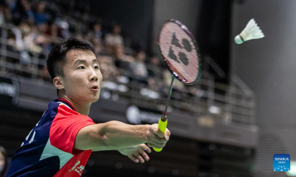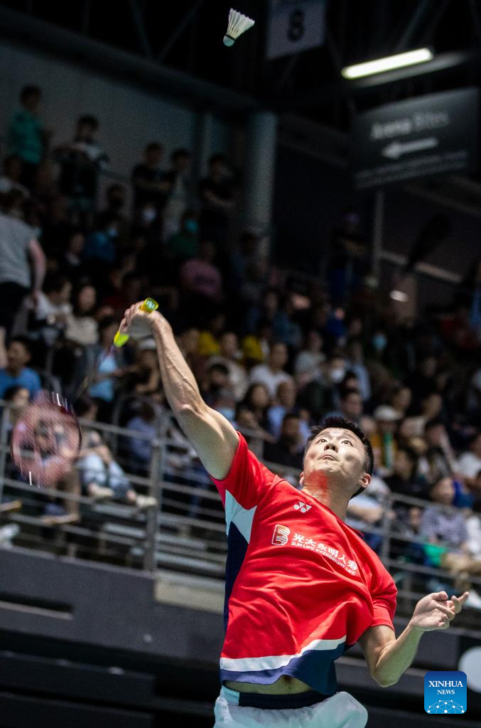 Lu Guangzu of China hits a return during men's singles quarterfinal match against Ikhsan Leonardo Imanuel Rumbay of Indonesia at the BWF Australian Open 2022 in Sydney, Australia, Nov. 18, 2022. (Photo by Hu Jingchen/Xinhua)