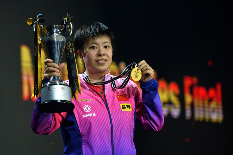 Wang Yidi of China poses during the awarding ceremony after winning the women's singles final against Mima Ito of Japan at the Asian Cup 2022 in Bangkok, Thailand on Nov. 19, 2022. (Xinhua/Rachen Sageamsak)