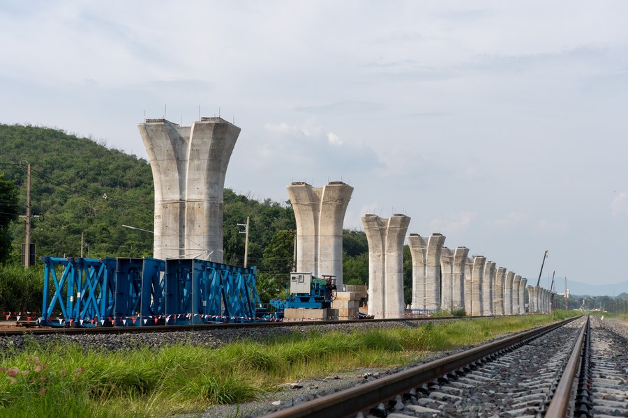 Photo taken on Sept. 7, 2022 shows a construction site of the China-Thailand railway in Nakhon Ratchasima province, Thailand. (Xinhua/Lin Hao)