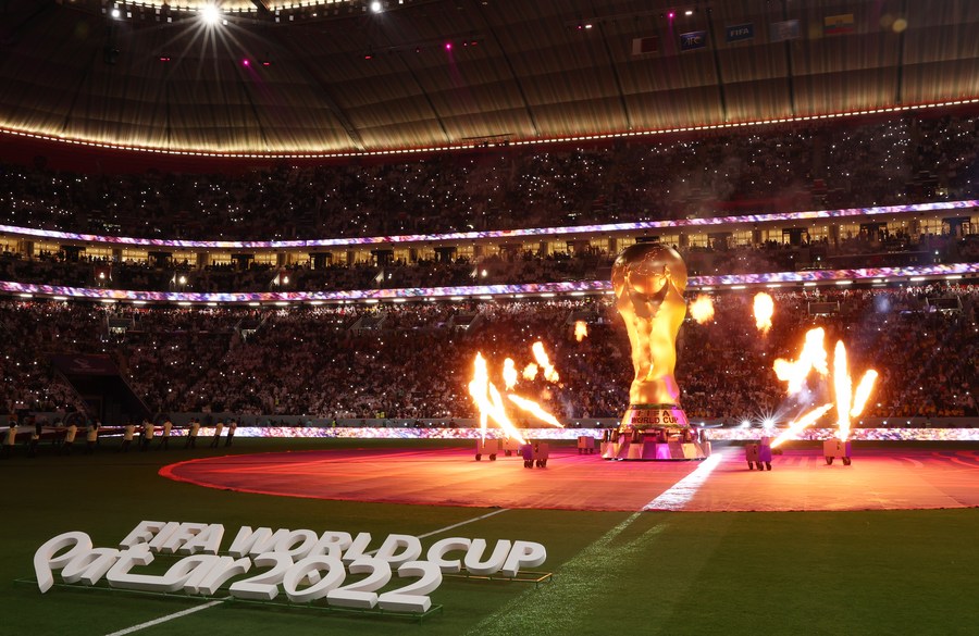 Dancers perform during the opening ceremony before the Group A match between Qatar and Ecuador at the 2022 FIFA World Cup at Al Bayt Stadium in Al Khor, Qatar, on Nov. 20, 2022. (Xinhua/Han Yan)