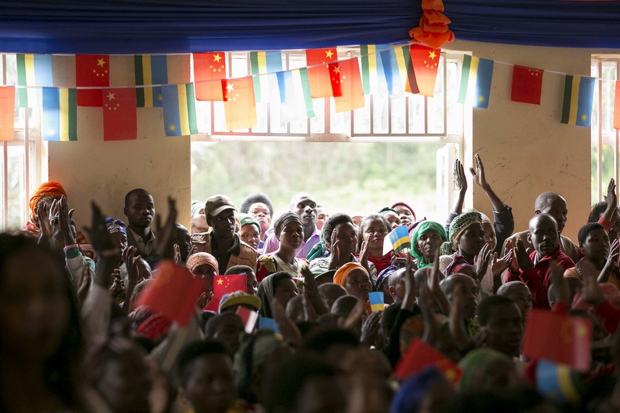Rwandan people attend the completion ceremony of a China-funded village television project in Rulindo District, central Rwanda, on May 24, 2019. The completion ceremony was held in Rulindo District, where China and Rwanda signed a handover document. The project of Access to Satellite TV for 10,000 African Village, part of the outcomes of the 2015 Forum on China-Africa Cooperation (FOCAC) summit, provides 300 Rwandan villages with free access to satellite TV. (Xinhua/Gabriel Dusabe)