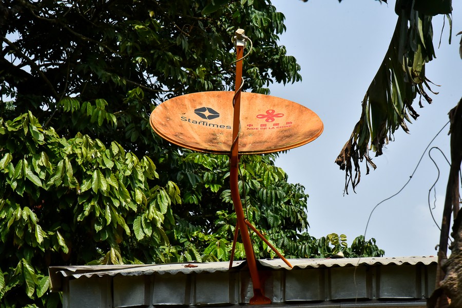 Photo taken on Jan. 12, 2022 shows a StarTimes TV satellite dish attached on the roof of a house in Nkoat-Abang, on the outskirts of Cameroon's capital Yaounde. (Photo by Kepseu/Xinhua)